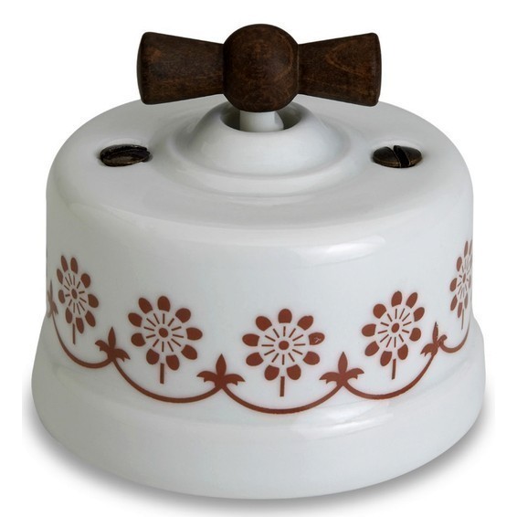 Выключатель-кнопка поворотный Fontini GARBY, белый/коричневывй, 30328242